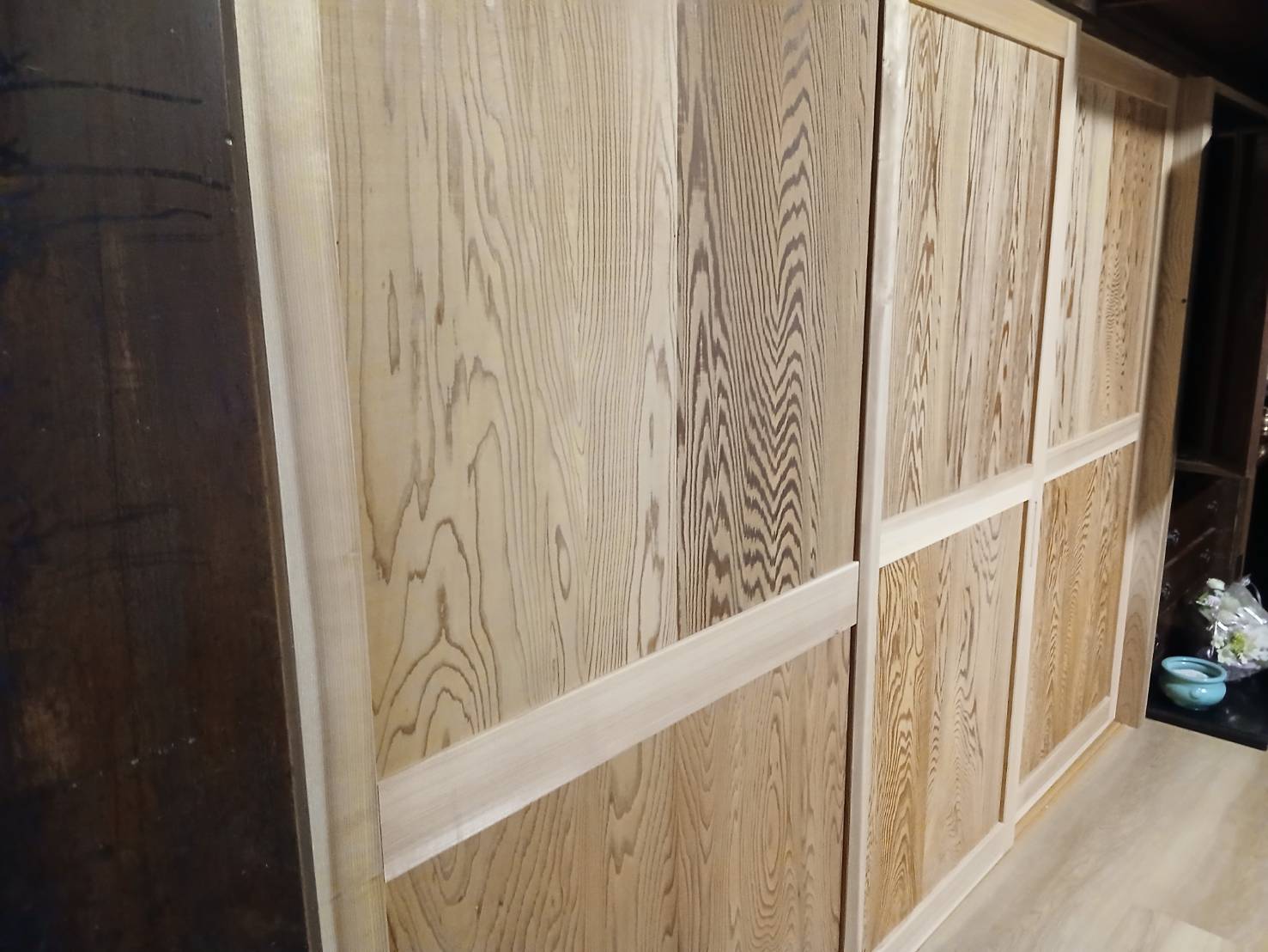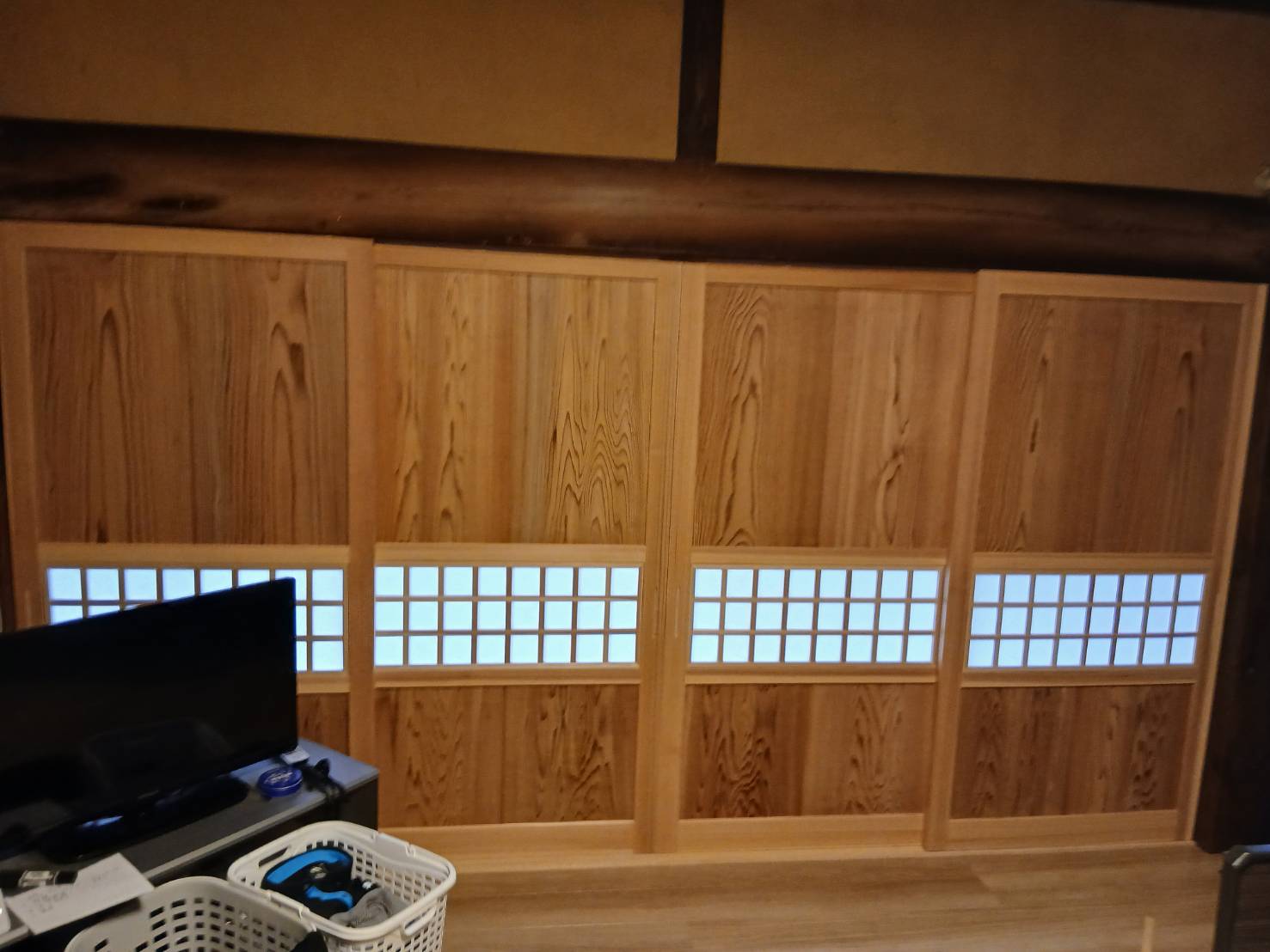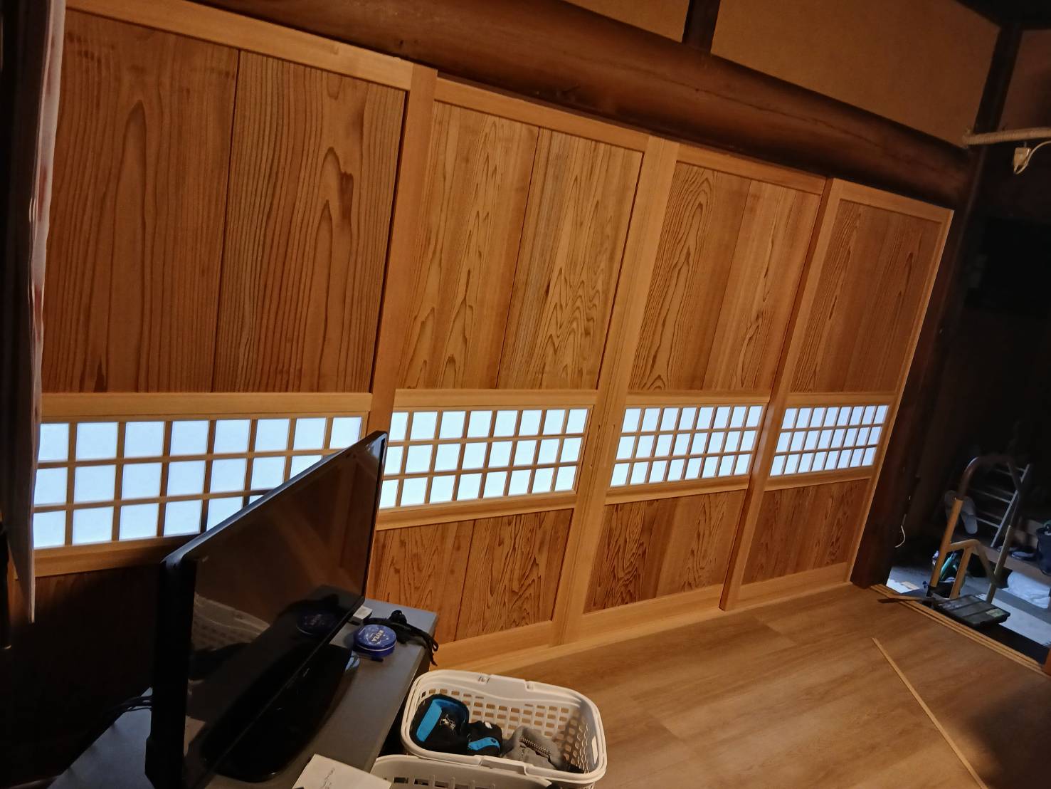 リフォーム 馬上工務店様 なんと築100年以上にもなる住宅のリフォームです。 久しぶりのオール杉で腰板+組子で作って下さいとのこと… 馬上工務店の親方はまだ,40代前半 今後こういった在来の仕事が出来る大工さんは貴重になりますよね(笑) 「こんな感じの仕上がりでイメージ大丈夫かな? 大工の健ちゃん」